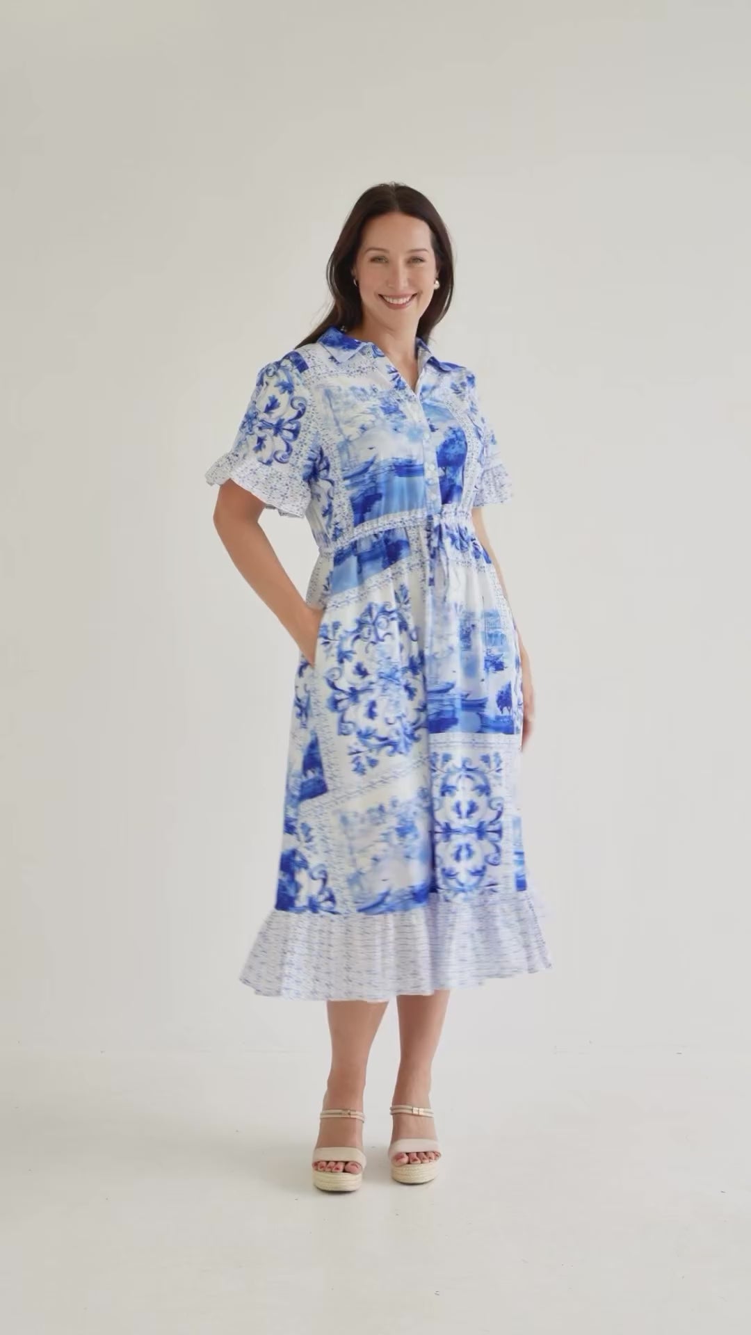 Coastal Blue Midi Dress in Blue Mosaic Print